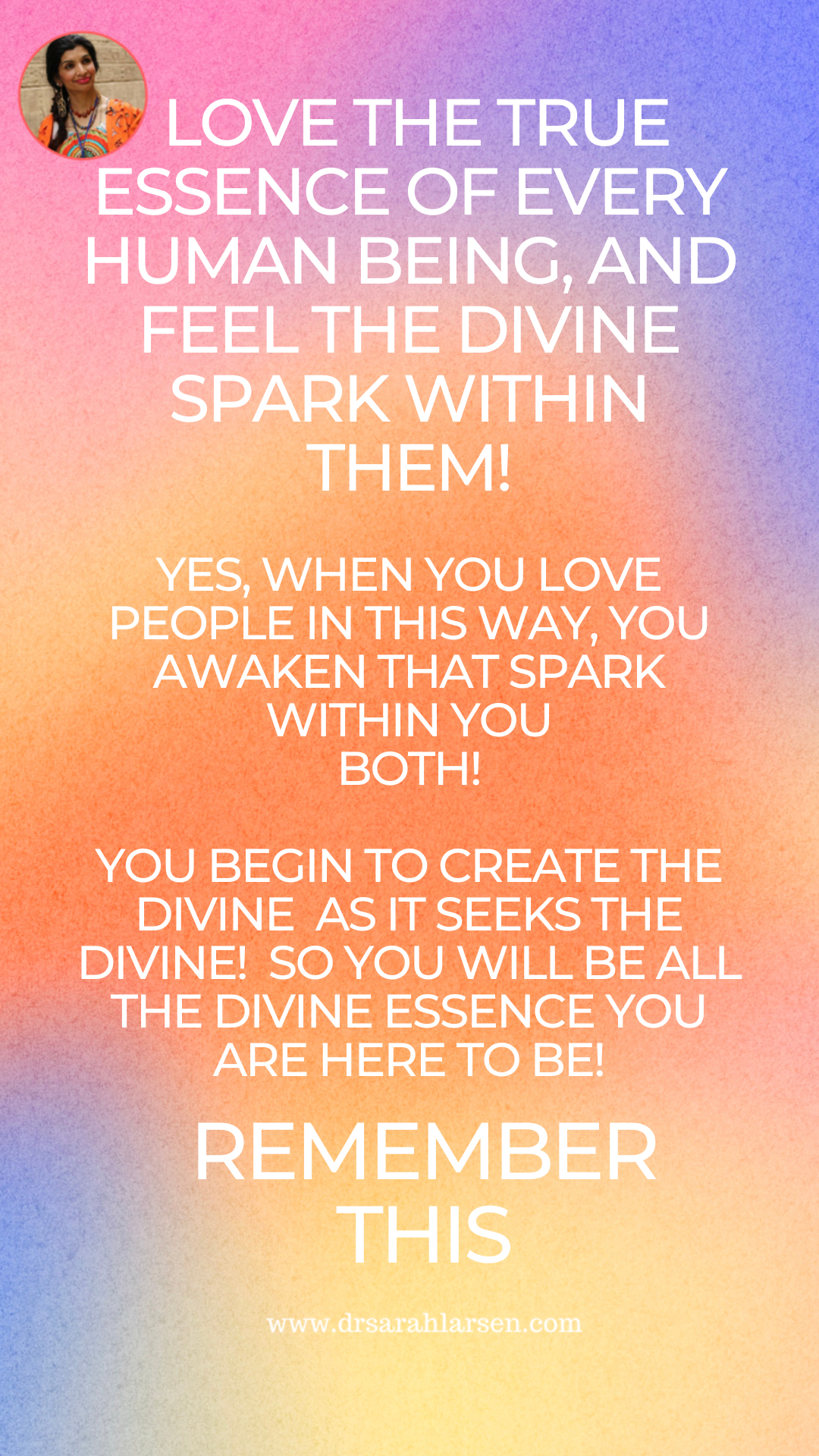 Dr Sarah is an extraordinarily inspiring woman who works tirelessly to help others in all ways. She teaches people to raise their consciousness and to serve. Always extremely loving, patient, and nurturing she creates a safe environment for people to thrive and to develop their highest potential. She teaches by example.